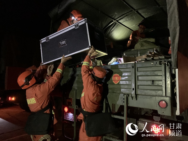 先遣分隊指戰(zhàn)員準備救災物資。(甘肅省森林消防總隊供圖)