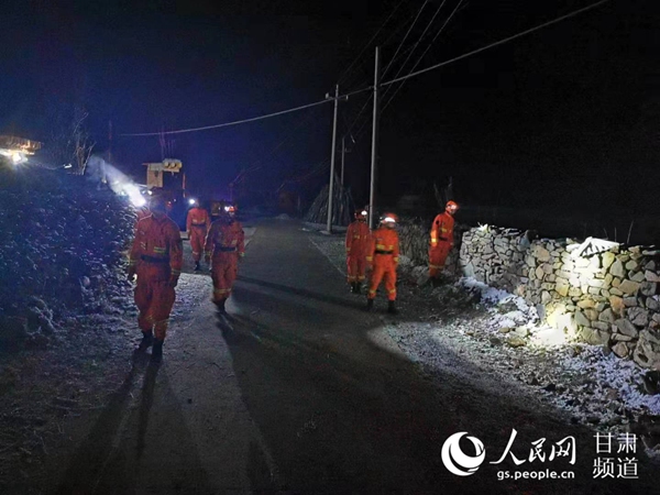 甘肅省森林消防總隊先遣分隊已到達震中并展開勘察、救援。(甘肅省森林消防總隊供圖)
