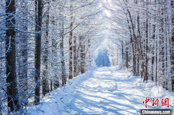 圖為銀裝素裹的阿爾山林間道路。內蒙古阿爾山市政府供圖