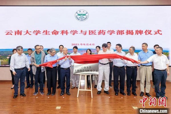 圖為云南大學(xué)生命科學(xué)與醫(yī)藥學(xué)部揭牌。 繆超 攝