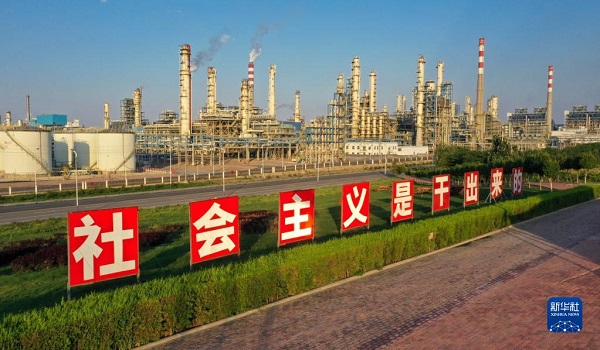 這是寧東能源化工基地國家能源集團寧夏煤業(yè)公司400萬噸煤制油項目(6月22日攝,無人機照片)。新華社記者王鵬攝