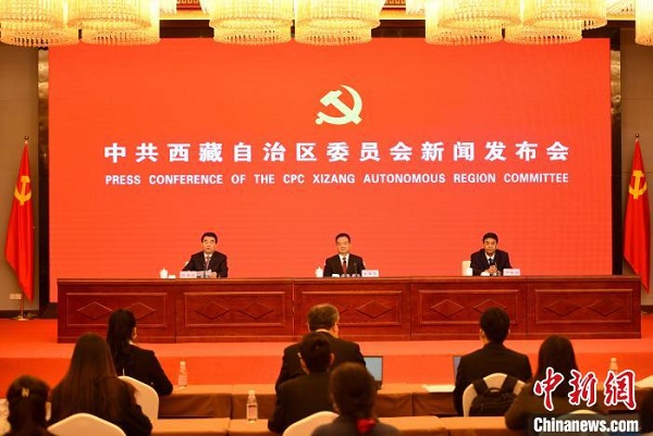 西藏自治區(qū)黨委書記王君正作主發(fā)布并回答媒體記者提問,西藏自治區(qū)黨委副書記、自治區(qū)主席嚴金海回答有關提問。