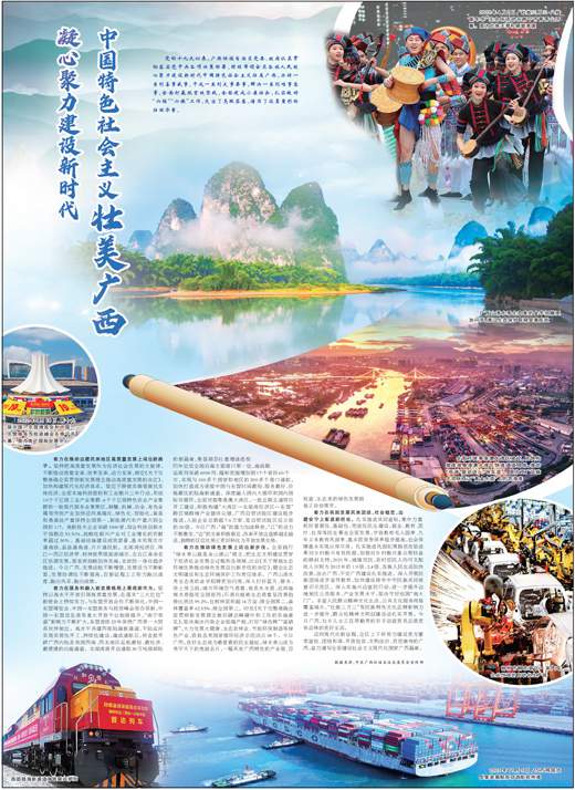 著力在推動邊疆民族地區(qū)高質量發(fā)展上闖出新路子。堅持把高質量發(fā)展作為經(jīng)濟社會發(fā)展的主旋律,不斷推動質量變革、效率變革、動力變革,制定《關于完整準確全面貫徹新發(fā)展理念推動高質量發(fā)展的決定》,加快構建現(xiàn)代化經(jīng)濟體系。堅定不移做實做強做優(yōu)實體經(jīng)濟,全面實施科技強桂和工業(yè)振興三年行動,形成10個千億級工業(yè)產(chǎn)業(yè)集群、6個千億級特色農(nóng)業(yè)產(chǎn)業(yè)集群和一批現(xiàn)代服務業(yè)集聚區(qū),制糖、機械、冶金、有色金屬等傳統(tǒng)產(chǎn)業(yè)加快邁向高端化、綠色化、智能化,蠶繭和桑蠶絲產(chǎn)量保持全國第一,新能源汽車產(chǎn)量占到全國的1/7。高新技術企業(yè)突破3300家,綜合科技創(chuàng)新水平指數(shù)達53.51%,戰(zhàn)略性新興產(chǎn)業(yè)對工業(yè)增長的貢獻率超過30%?;A設施建設成效顯著,基本實現(xiàn)市市通高鐵、縣縣通高速、片片通民航。北部灣經(jīng)濟區(qū)、珠江—西江經(jīng)濟帶、桂林世界級旅游城市、左右江革命老區(qū)協(xié)調發(fā)展,強首府戰(zhàn)略加快實施,北欽防一體化穩(wěn)步推進。今日廣西,發(fā)展動能不斷增強,發(fā)展活力不斷彰顯,發(fā)展協(xié)調性不斷提高,在新征程上正努力跑出速度、跑出風采、跑出成績。