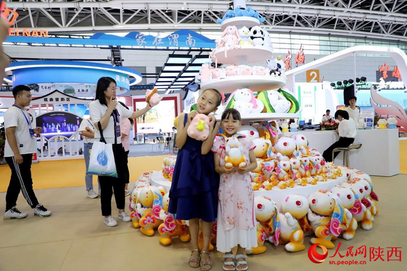 產(chǎn)業(yè)成果館安康展區(qū)毛絨玩具“國(guó)潮吉祥兔”贏得小朋友喜愛。人民網(wǎng)記者 孫挺攝