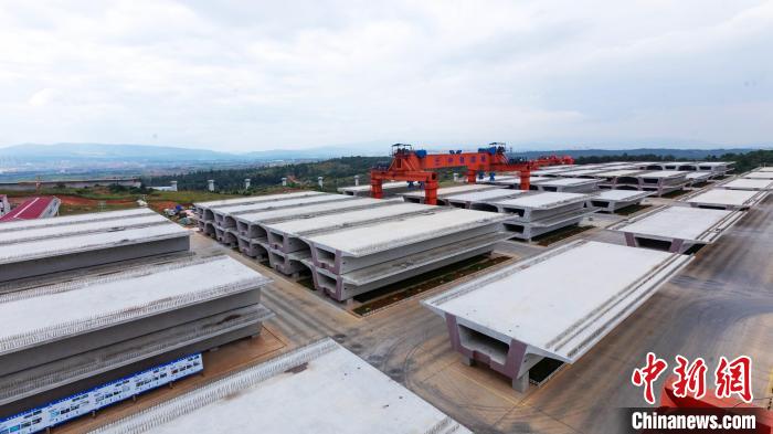 圖為位于云南省嵩明縣的渝昆高鐵嵩明制梁場(chǎng)。李何攝