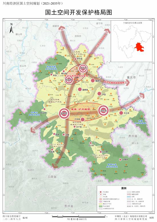 2023年川南經(jīng)濟區(qū)地區(qū)生產(chǎn)總值破萬億,經(jīng)濟總量位居全省第二。勢頭足,短板也突出,面臨核心城市能級不足,重點產(chǎn)業(yè)、公共服務等方面交叉重復等情況。對此,《川南經(jīng)濟區(qū)國土空間規(guī)劃(2021—2035年)》(簡稱“川南經(jīng)濟區(qū)規(guī)劃”》)進一步引導城鎮(zhèn)和產(chǎn)業(yè)空間高效集聚。