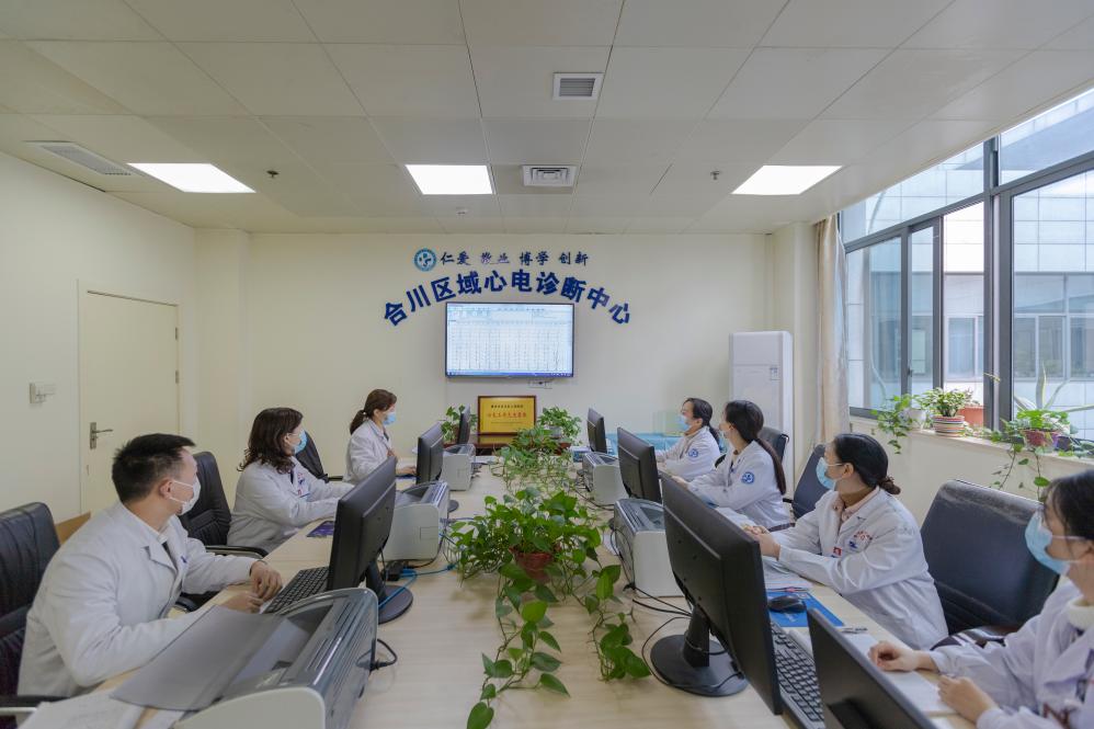 在重慶合川區(qū)域心電診斷中心,醫(yī)務(wù)人員正在解讀報(bào)告。(楊益攝)