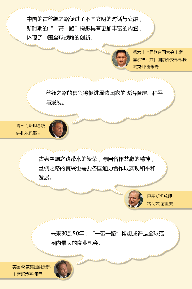 2013年,習(xí)近平主席提出“一帶一路”偉大構(gòu)想,引起世界各國(guó)廣泛共鳴。經(jīng)過(guò)近四年的扎實(shí)推進(jìn),目前,“一帶一路”倡議已落地生根、開(kāi)花結(jié)果,一幅惠及世界的藍(lán)圖正筆筆繪就、徐徐展開(kāi)。在此過(guò)程中,習(xí)近平主席在國(guó)內(nèi)外各種場(chǎng)合多次發(fā)表重要論述,他對(duì)“一帶一路”核心內(nèi)容如何闡述?“一帶一路”為全球經(jīng)濟(jì)發(fā)展注入怎樣的新動(dòng)力?各方又給出了怎樣的評(píng)價(jià)?一張動(dòng)態(tài)圖解告訴你。