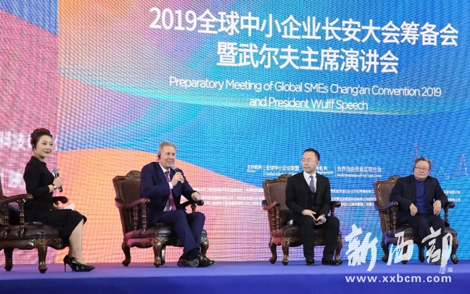在期間召開的“2019全球中小企業(yè)長安大會籌備會”中,金新康與聯(lián)合國第八任秘書長潘基文,德國前總統(tǒng)、全球中小企業(yè)聯(lián)盟主席武爾夫,波蘭前總統(tǒng)科莫羅夫斯基,就智能制造、企業(yè)家精神、可持續(xù)發(fā)展等內(nèi)容進行對話。