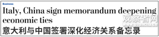 此前,美國曾數(shù)次對(duì)意大利有意加入“一帶一路”發(fā)出“警告”?!度A爾街日?qǐng)?bào)》就在《不顧美國憤怒,意大利簽署了中國的全球基礎(chǔ)設(shè)施建設(shè)計(jì)劃》一文中聲稱,意大利與中國簽署協(xié)議,將就“一帶一路”展開合作,這令意大利的美歐盟友感到擔(dān)憂。