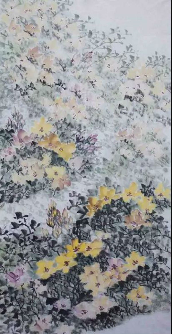 說(shuō)起傳統(tǒng)文化的踐行,這也與她生命的認(rèn)知息息關(guān)聯(lián)。她來(lái)自民國(guó)范兒極濃的京畿之地,在董升身上,那份天生的優(yōu)雅和記者生涯所歷練的陽(yáng)光明媚之氣,使她的個(gè)性氣質(zhì),明朗鮮活。而這份氣質(zhì),悄悄地融入了《山花系列》恣肆雄渾,明朗清新,孕育著山花淳樸明快的勃勃生機(jī),不得不說(shuō)畫如其人。