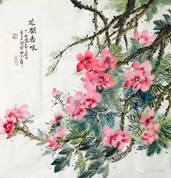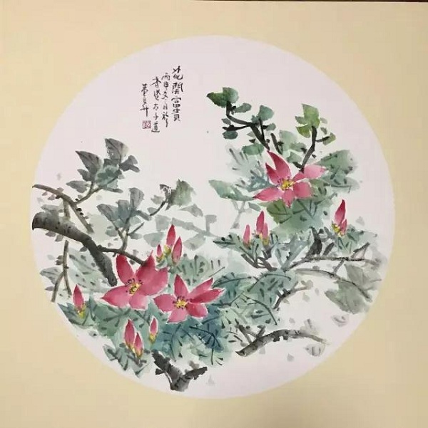 不由重新審視她的畫,感覺一股明朗陽(yáng)光的氣息在眼前氤氳。本身,花鳥畫是生活情趣的再現(xiàn),他和人物山水不同,人物表現(xiàn)的是生命狀態(tài),山水表現(xiàn)的是人的襟懷。但在她的畫中,可以看到她對(duì)花鳥的認(rèn)識(shí),是以嵯峨的山水襟懷去表現(xiàn)花鳥的情趣的,去展現(xiàn)生活美好的,去發(fā)覺自我靈魂對(duì)藝術(shù)的認(rèn)知的。這得益于“她生命的認(rèn)知是對(duì)傳統(tǒng)文化孝道的執(zhí)著踐行的結(jié)果?!?/p>