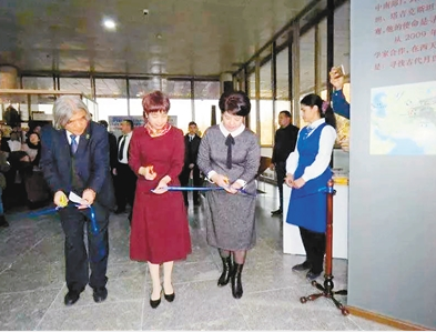 王建新教授(左一)、中國駐烏茲別克斯坦大使姜巖(中)為中烏聯(lián)合考古成果展剪彩。