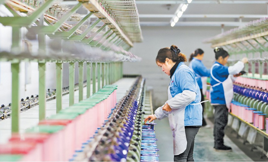 2月23日,黔江區(qū)正陽工業(yè)園區(qū)一絲綢公司生產(chǎn)車間,工人正在絡(luò)絲。