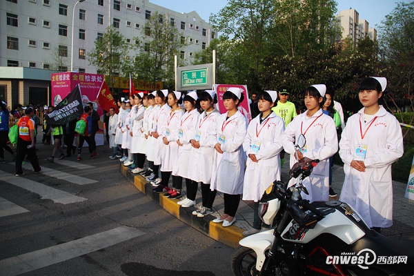 “今年我們征集了陜西醫(yī)科學(xué)校的600多名學(xué)生,全力配合今天的賽事醫(yī)療救護(hù)工作,從目前的情況來看,運(yùn)動員的狀況主要集中在小腿肌肉疼痛、彎道蹭傷等,沒有過于嚴(yán)重的運(yùn)動傷害。建議參賽者賽前一定要做好熱身工作,賽途中補(bǔ)給點(diǎn)及時(shí)補(bǔ)充水分,彎道超越時(shí)適當(dāng)放慢速度,避免受傷?!贬t(yī)療小分隊(duì)喬飛表示。