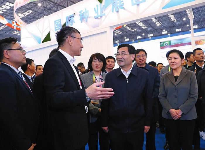 胡和平首先來到陜西“3+X”特色現(xiàn)代農(nóng)業(yè)展區(qū),了解果業(yè)、畜牧養(yǎng)殖業(yè)、設(shè)施農(nóng)業(yè)等發(fā)展情況,要求持續(xù)用力,把我省特色現(xiàn)代農(nóng)業(yè)做強(qiáng)做優(yōu)。在科技部、中科院展區(qū)和國際企業(yè)展區(qū),他聽取菊花新品種、海洋生態(tài)牧場、蘋果苗培育情況介紹,與參展代表深入交流。在區(qū)校融合展區(qū),胡和平觀看楊凌示范區(qū)發(fā)展成就展播,希望更好發(fā)揮在示范推廣、國際合作等方面的作用。在智慧農(nóng)業(yè)展區(qū),胡和平察看農(nóng)業(yè)智慧平臺(tái)演示,鼓勵(lì)他們用好科技手段,推動(dòng)農(nóng)產(chǎn)品與市場有效對(duì)接。
