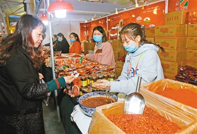 農(nóng)高會(huì)上賣辣椒面的攤點(diǎn)都推出了先嘗后買的服務(wù)