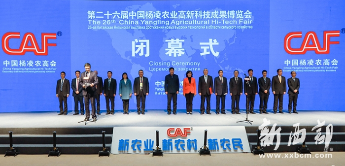 楊凌示范區(qū)黨工委副書記、管委會常務(wù)副主任、第二十六屆農(nóng)高會籌委會副秘書長李九紅主持閉幕式。示范區(qū)黨工委副書記、第二十六屆農(nóng)高會籌委會執(zhí)行副秘書長劉天雄宣讀第二十六屆農(nóng)高會優(yōu)秀組織獎、優(yōu)秀展示獎、優(yōu)秀成交獎、優(yōu)秀服務(wù)獎的表彰決定。陜西省科技廳副廳長林黎明宣讀“后稷獎”表彰決定。新疆維吾爾自治區(qū)科技廳黨組成員、副廳長吉力力·合力力,西北農(nóng)林科技大學(xué)黨委副書記陳紅,楊凌職業(yè)技術(shù)學(xué)院黨委書記陳寧等出席閉幕式。