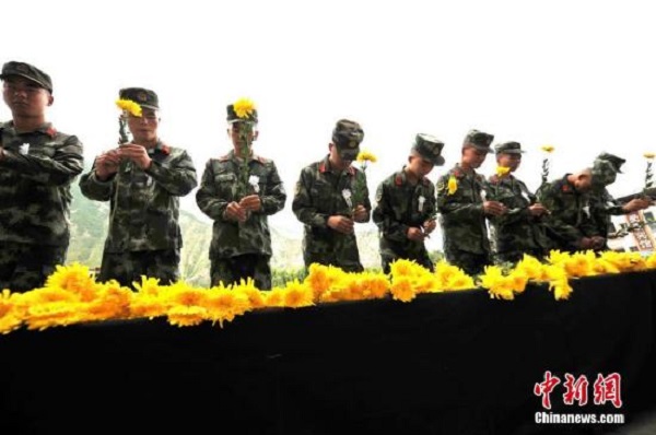 8月15日10時許,悼念九寨溝地震遇難者公祭活動在九寨溝縣城新區(qū)文化廣場舉行。近千名機關(guān)干部、部隊官兵、民眾代表整齊列隊,莊嚴肅立默哀1分鐘,并敬獻鮮花,深切緬懷在地震中遇難的同胞。 中新社記者 周旺波 攝