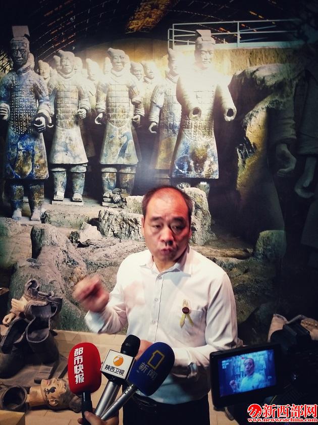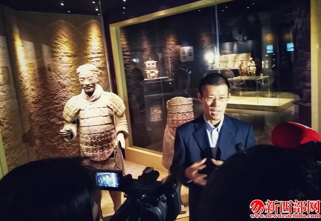 秦陵博物院院長(zhǎng)向媒體介紹秦俑彩繪保護(hù)的意義