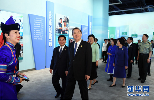 中央代表團副團長劉延東、孫春蘭、張平、王正偉、張陽和代表團全體成員,以及內(nèi)蒙古自治區(qū)有關(guān)負責人一同參觀展覽。8月7日,中共中央政治局常委、全國政協(xié)主席、中央代表團團長俞正聲率代表團全體成員來到內(nèi)蒙古展覽館,參觀《守望相助團結(jié)奮斗——慶祝內(nèi)蒙古自治區(qū)成立70周年展覽》。