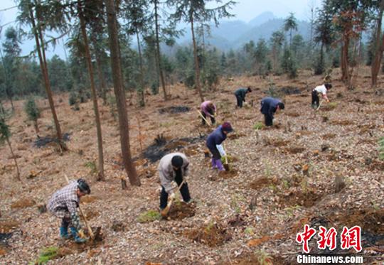 中新網(wǎng)恩施3月11日電 (宋丹丹 姚禎發(fā) 曾維明) 7年前,他披荊斬棘、進(jìn)山植樹;7年中,他投資百萬(wàn)、植樹千畝;7年后,綠樹成蔭、耕耘豐碩。湖北恩施農(nóng)民葛坤龍憑著對(duì)大山的深情,將昔日雜草叢生的荒山打造成如今的千畝樹林,實(shí)現(xiàn)了自己的綠色夢(mèng)。