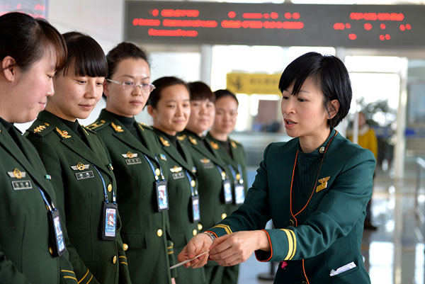 呼和浩特邊防女檢查員跟臺灣空姐學禮儀