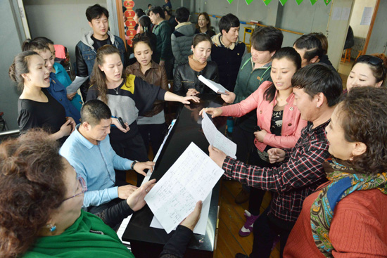 2月26日,演員在排練蒙古劇《敖包相會(huì)》開場(chǎng)歌《豐收的喜悅》。王正 攝