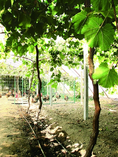 在賀蘭山下的一處葡萄基地標(biāo)準(zhǔn)園里,葡萄架都呈“V”字形。技術(shù)人員告訴記者,這是專供釀造高檔葡萄酒用的,全部采用節(jié)水滴灌技術(shù),不施農(nóng)藥、化肥,每畝產(chǎn)量控制在600公斤左右,效益遠(yuǎn)超一般葡萄園。