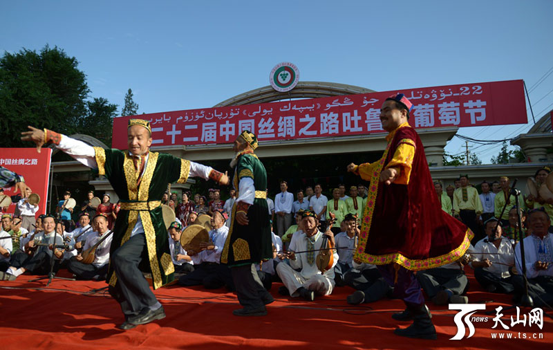 歡快的麥西來(lái)普慶祝第22屆吐魯番葡萄節(jié)開幕