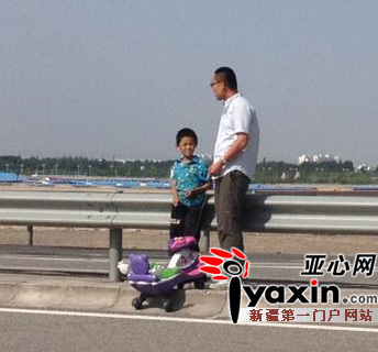 8月5日11時,在G30高速公路玉門服務(wù)區(qū)附近,一名騎著扭扭車的男孩引起路人注意,男孩1.4米左右的個頭,吃力地趕著路。