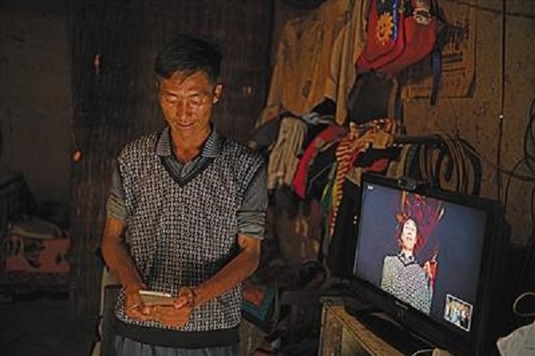 17日,阿土勒爾村,村民陳古吉展示電信免費(fèi)為他家裝的視頻電話。