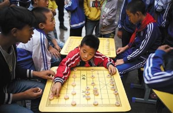 17日,參加周末課外興趣組的孩子們正在下象棋。