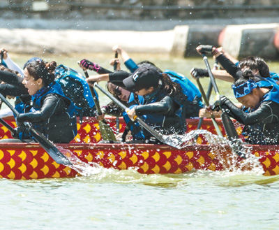 6月24日,參賽選手在500米直道競(jìng)賽中。當(dāng)日,2017中國(guó)大荔世界名校龍舟大賽在陜西大荔同州湖鳴槍。來(lái)自哈佛大學(xué)、斯坦福大學(xué)、多倫多大學(xué)、新加坡國(guó)立大學(xué)、北京大學(xué)、香港大學(xué)、澳門(mén)大學(xué)、復(fù)旦大學(xué)、西安交通大學(xué)等國(guó)內(nèi)外名校共25支龍舟隊(duì)的400名運(yùn)動(dòng)員參加了角逐。