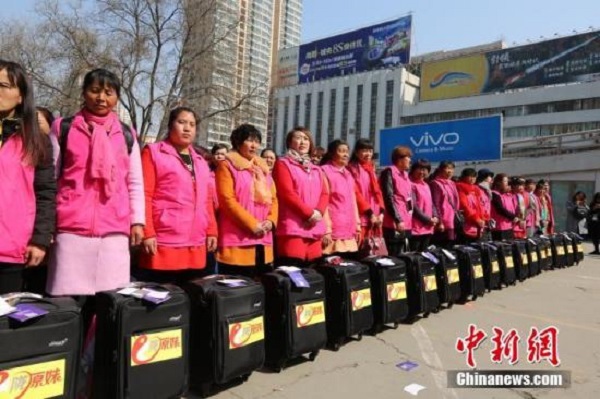 資料圖:來自甘肅省各地的200多名貧困婦女以“隴原妹”的身份前往北京、天津就業(yè)創(chuàng)業(yè)。鐘欣 攝
