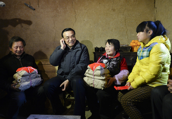 連續(xù)4年,李克強(qiáng)都在春節(jié)前夕深入偏遠(yuǎn)窮苦地區(qū)看望百姓。今年春節(jié)前的最后一次國務(wù)院常務(wù)會(huì)上,他專門部署要求全國各縣(市、區(qū))建立健全由政府負(fù)責(zé)人牽頭的困難群眾生活保障工作協(xié)調(diào)機(jī)制,一定要把黨中央、國務(wù)院相關(guān)決策部署落實(shí)到基層。