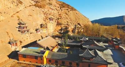 在美麗的祁連雪山呵護下,馬蹄寺石窟群就像是鑲嵌在鉆石圈里的閃亮寶石,輝映生光。