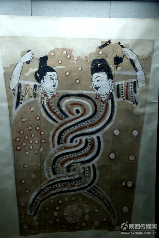 阿斯塔納古墓出土的女媧伏羲圖案壁畫