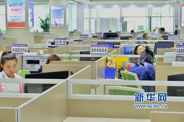 烏蘭察布電子商務(wù)創(chuàng)業(yè)孵化園內(nèi),各類電商企業(yè)的工作人員正在忙碌中。(朱津明 攝)