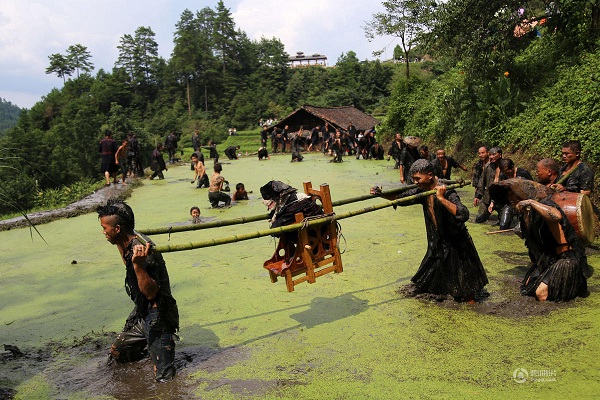 “抬狗節(jié)”當(dāng)天人們不但會(huì)抬狗走村串寨,還會(huì)有旋律地敲鼓。