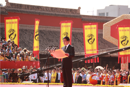 甘肅省政協(xié)主席馮健身主持2016(丙申)年公祭中華人文始祖伏羲大典儀式。