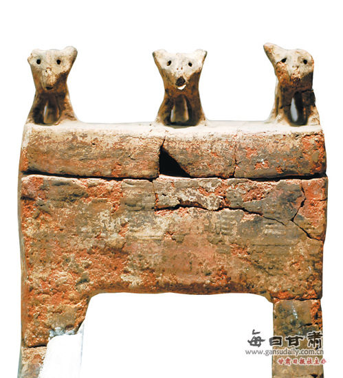 方形陶鼎,蓋子上竟然有三只猛犬,這難道是犬戎部族圖騰?