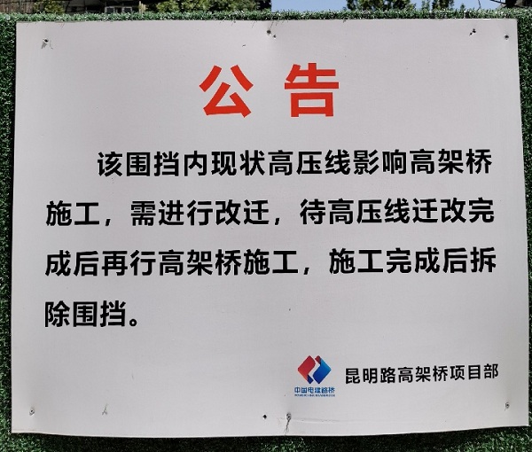 昆明路高架橋項(xiàng)目部圍擋公告。新華網(wǎng)發(fā)
