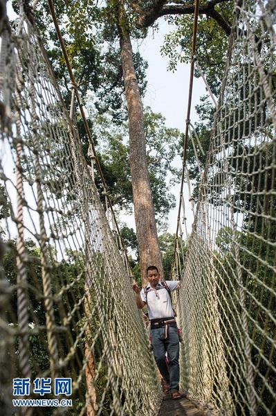 云南省西雙版納傣族自治州勐臘縣“望天樹”熱帶雨林主題公園景區(qū)內(nèi)森林茂密,郁郁蔥蔥,吸引了許多游客來此旅游。望天樹是西雙版納熱帶雨林中最高大的喬木。這種樹樹干筆直,高出一般樹叢20多米,形成森林上面還有森林的奇觀。