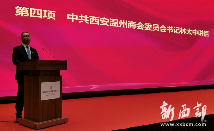 ▲林太中書記代表新成立的西安溫州商會(huì)黨委班子作表態(tài)發(fā)言