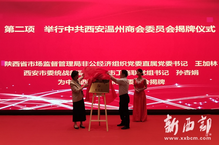 ▲王加林書記和孫杏娟書記(左一)共同為中共西安溫州商會(huì)委員會(huì)揭牌