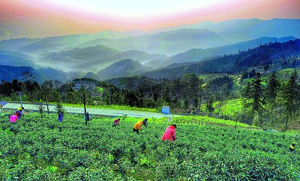 宜賓苗鄉(xiāng)茶園清晨美如畫 絢麗多彩