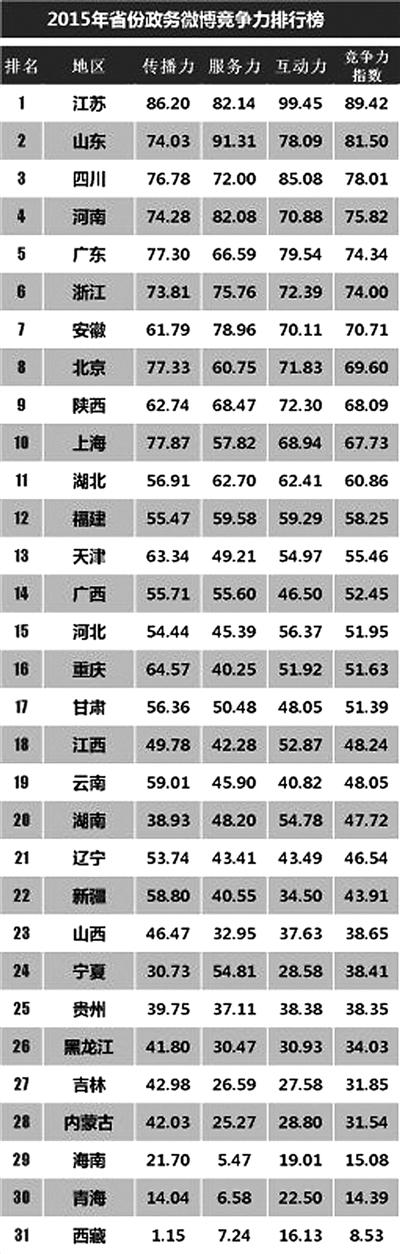 2015年政務(wù)微博指數(shù)風(fēng)云榜發(fā)布 陜西排名第九