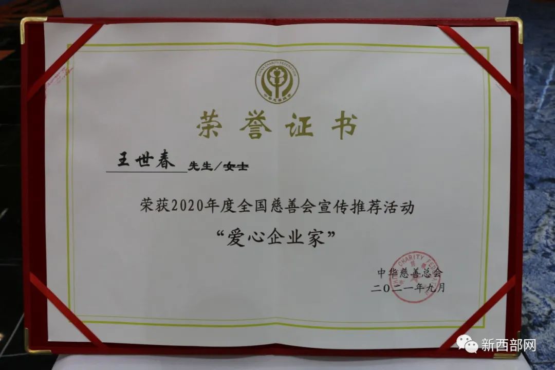 ▲陜西鴻瑞投資集團(tuán)有限公司董事長(前右三)榮獲2020年度全國慈善會(huì)宣傳推薦活動(dòng)“愛心企業(yè)家”稱號。王順利/攝影(新西部網(wǎng)發(fā))