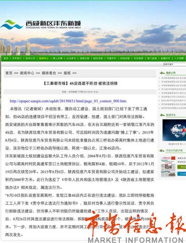 有知情者透漏,在灃東新城三橋地盤上非法建筑確實很多,對于江淮4s店應(yīng)該是兩種處理結(jié)果,一是再次強行拆除,二是收繳充公。